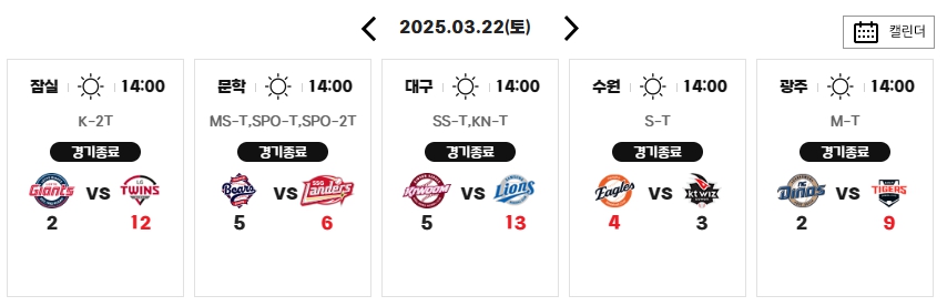 역시 작년 2024 KBO TOP3였던 LG 삼성 KIA 역시나 큰 점수차이로 승리를!